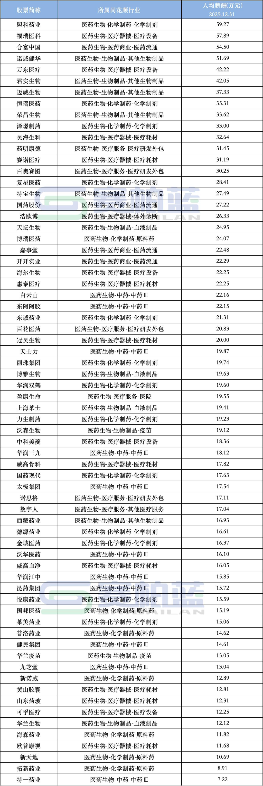 同花顺问财数据显示,截至目前,A股已有68家医药企业公布2025年人均薪酬。