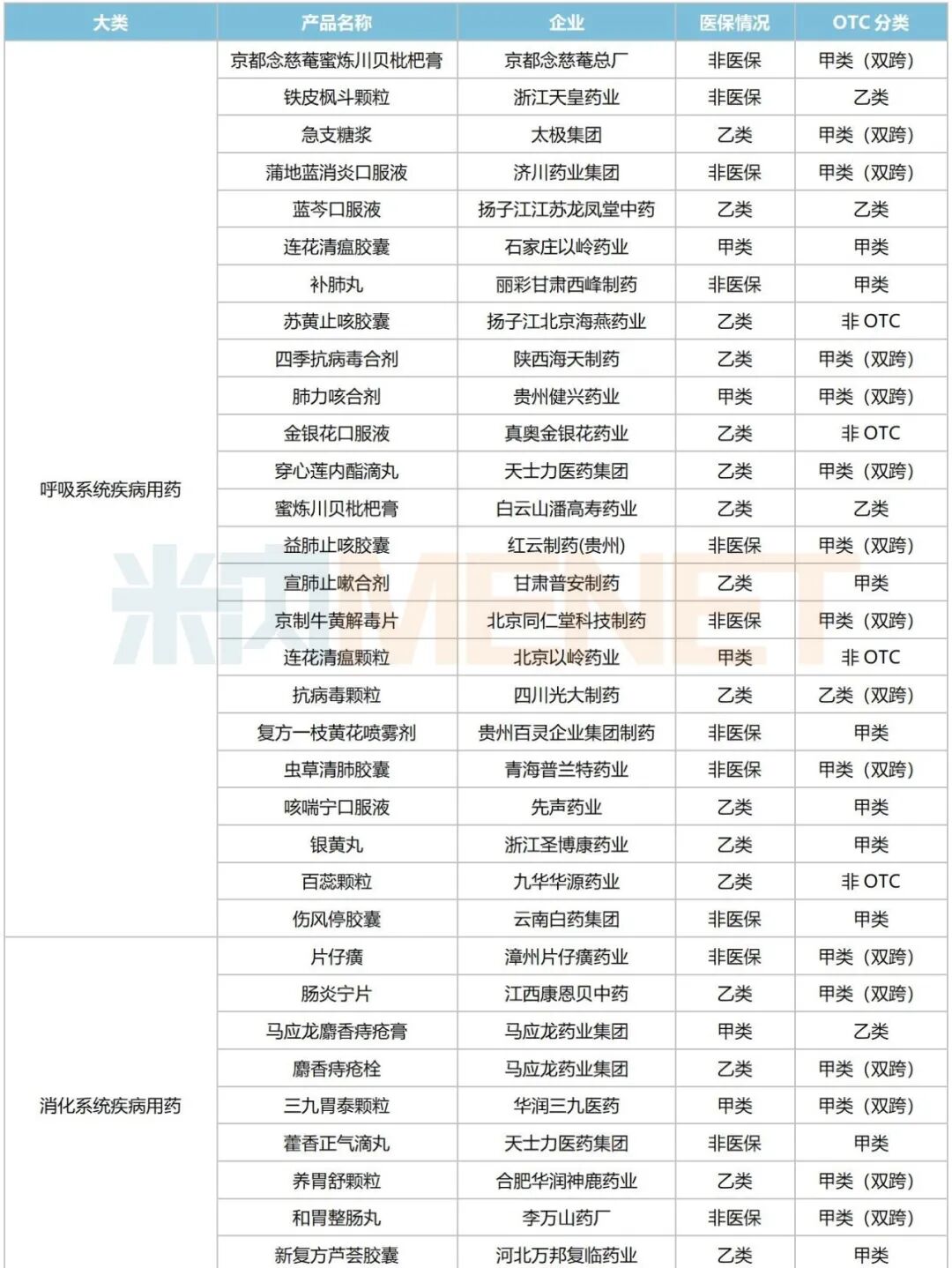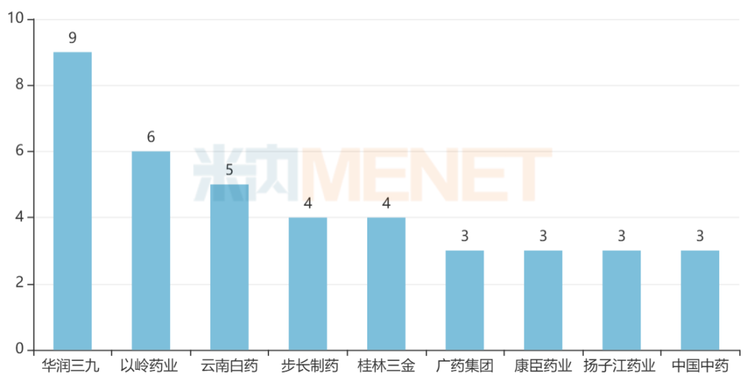 此外,步长制药、桂林三金各有4个品种在列,广药集团、康臣药业、扬子江药业、中国中药各有3个品种在列,太极集团、健民药业、津药达仁堂、济川药业等10余家企业各有2个品种在列。