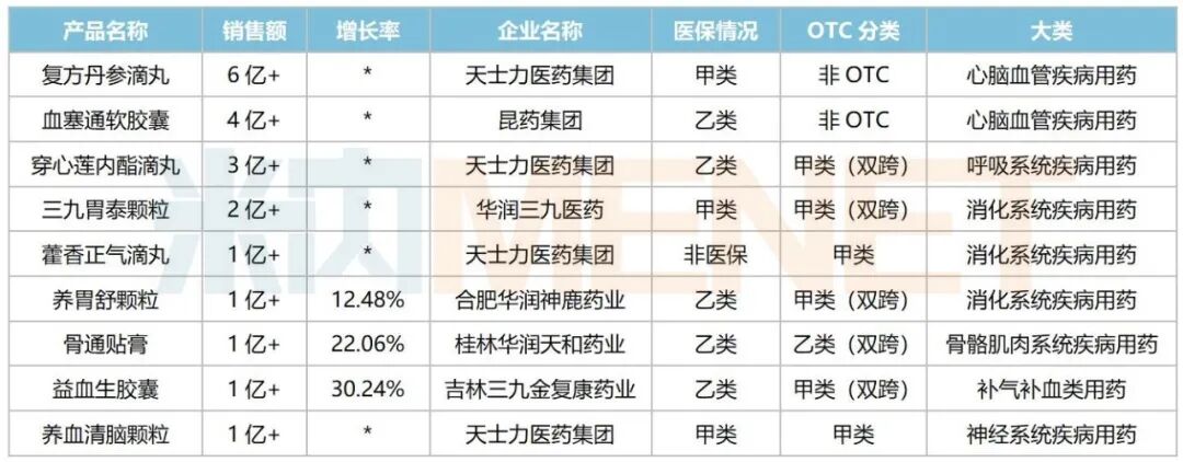 2025年中国零售药店终端销售过亿且增速超10%的独家中成药