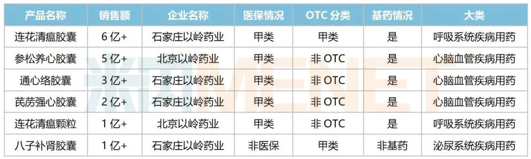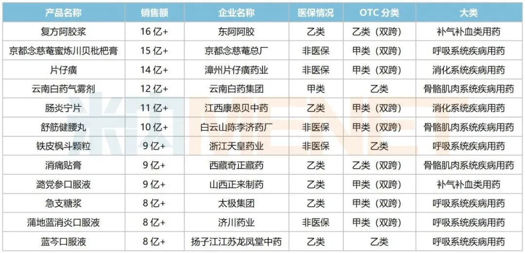 6个超10亿品种领跑!12个独家中成药大卖
