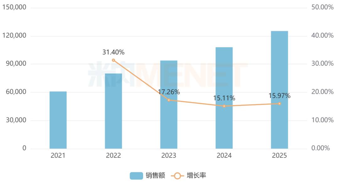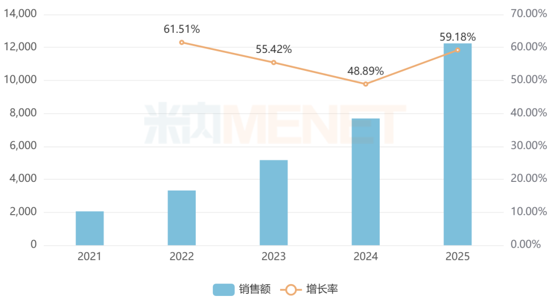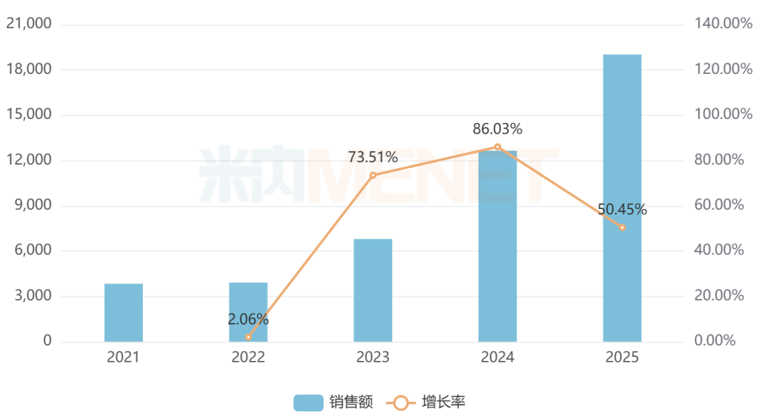 广东罗浮山国药的苁黄补肾胶囊具有滋补肾阴、强筋壮骨的功效,可用于肾虚、腰酸等。得益于网上药店的快速放量,该药近年来在中国零售药店的销售额增势迅猛,2025年突破2亿元,同比增长226.94%。
