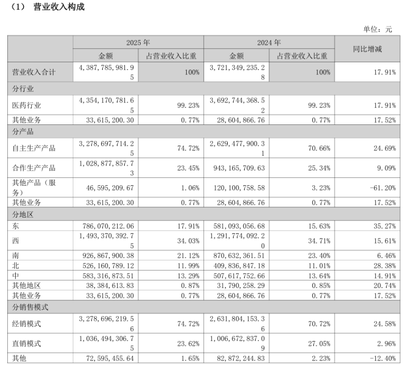 一是主业盈利能力显著提升。2025年,海思科实现营业收入43.88亿元,同比增长17.91%。在医药行业整体承压的背景下,这一增速远超规模以上医药制造业(-1.2%)。归属于上市公司股东的净利润为2.60亿元,同比大幅下降34.36%,主要为本期政府补助金额较上年同期大幅减少(从2024年的1.96亿元降至1.24亿元)所致。扣除非经常性损益的净利润(扣非净利润)达到1.67亿元,同比增长26.33%,表明公司依靠药品销售的核心业务正步入加速增长通道。