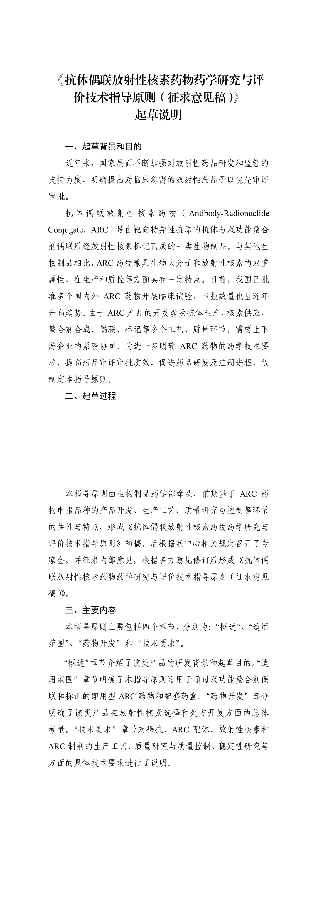 关于公开征求《抗体偶联放射性核素药物药学研究与评价技术指导原则(征求意见稿)》意见的通知