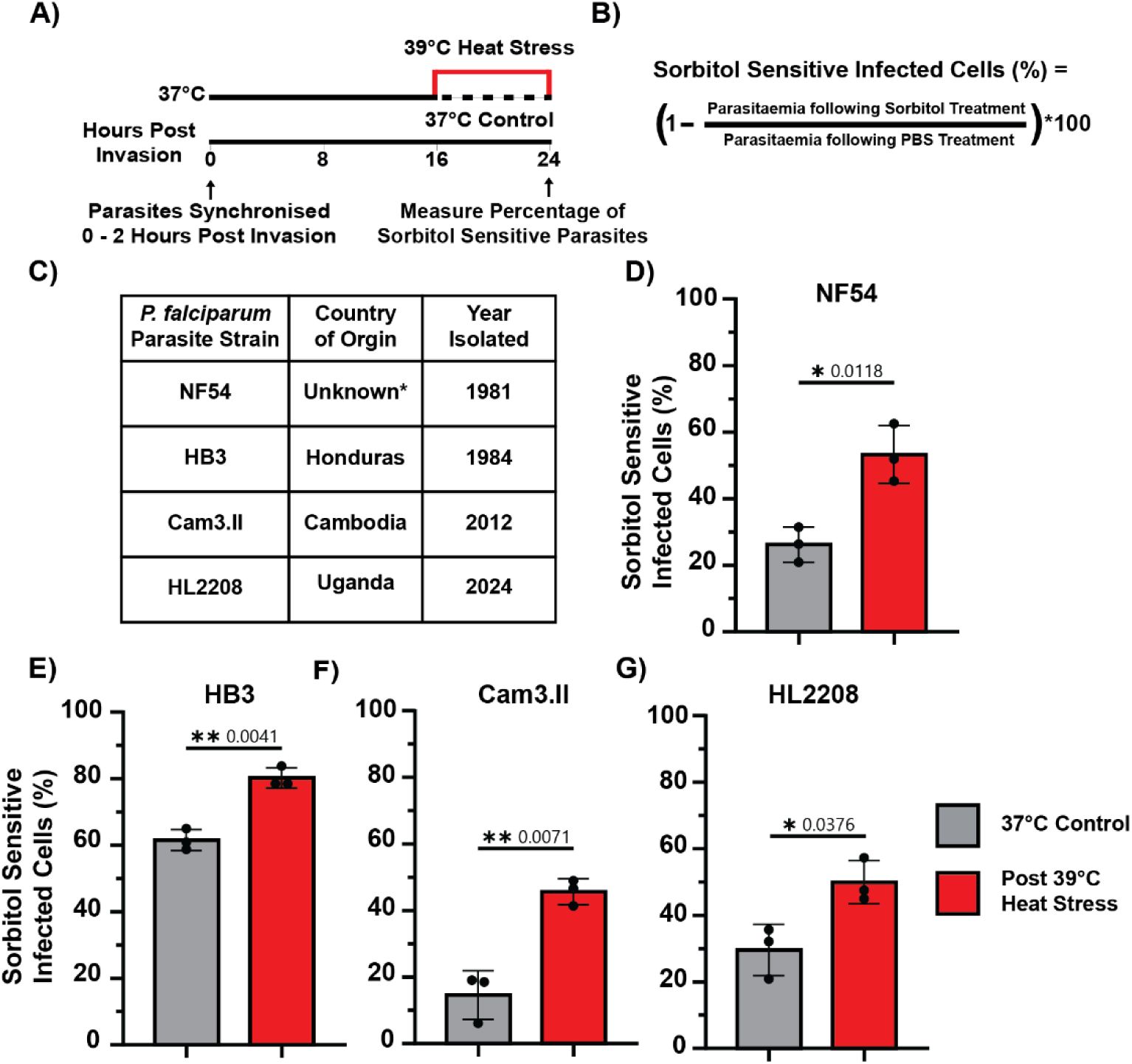 Previous studies found that the first half of the asexual life cycle (0-24 hpi) is more resistant to heat stress than the second half (24-48 hpi)