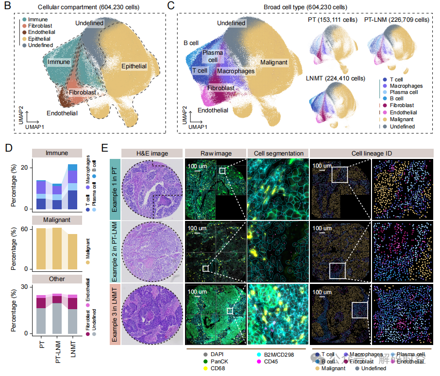 1.首个利用CosMx SMI技术对小细胞肺癌 PT、PT-LNM、LNMT 进行系统性高分辨率单细胞空间转录组分析的研究,首次绘制了淋巴结转移的空间细胞图谱;