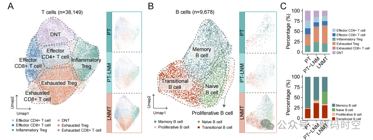 图5 小细胞肺癌淋巴结转移中T细胞和B细胞异质性