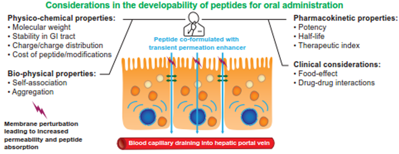 - Considerations in the developability of peptides for oral administration when formulated together with transient permeation enhancers