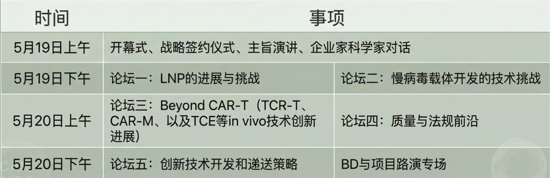 本次峰会以“Accelerating ideas, Delivering impact”为核心方向,汇聚国内外顶尖学者、产业领袖、临床 PI 及监管专家,打造覆盖全产业链的两天深度论坛,从科学前沿进展、产业难点专题研讨到商业化落地质量监管,沿脉络递进,解锁下一代CGT的创新密码。