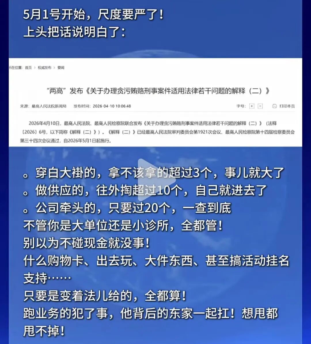 就在这几天,最高人民法院、最高人民检察院联合发布《关于办理贪污贿赂刑事案件适用法律若干问题的解释(二)》(法释〔2026〕6号,以下简称《解释(二)》)。