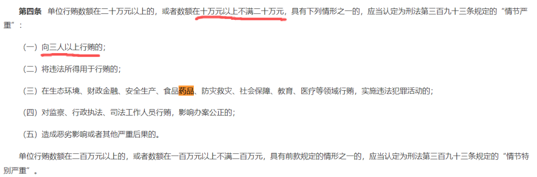对行贿方的打击更致命。普通领域个人对单位行贿,20万才入罪;医疗领域降到10万。单位对单位行贿,普通领域40万入罪,医疗领域降到20万。
