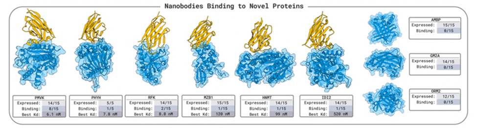 iv. 筛选:使用AlphaFold2预测设计结构,预测的置信度pAE<10,预测结构与设计结构的RMSD<1A,从中挑选95个进行实验验证。