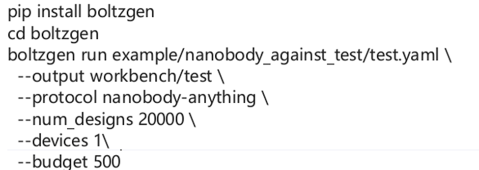 安装和使用boltzgen讲解,将详细讲解yaml配置文件的写法,以一个靶点为例,从头生成VHH与该靶点结合。