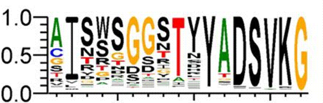 3)绘制序列Logo,可视化的展示每个位点的氨基酸频率和保守性