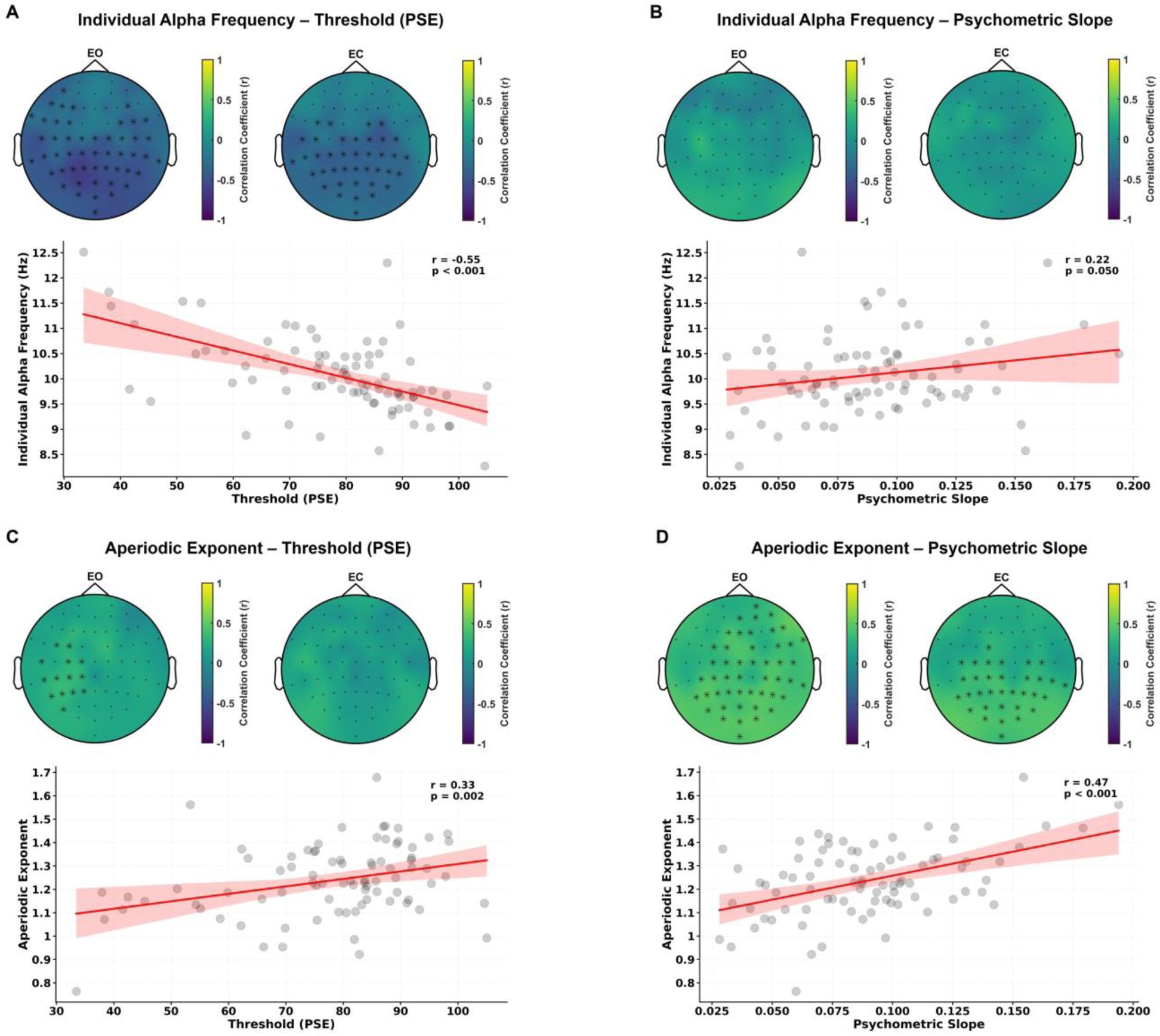 . Thus, oscillatory and aperiodic neural dynamics may jointly shape visual temporal integration, providing a more complete account of how the brain samples sensory input over time and potentially explaining recent null findings. In this study, we investigated this potential interaction between aperiodic structure and oscillatory dynamics, in the context of the different aspects and potential mechanisms involved in temporal perception.