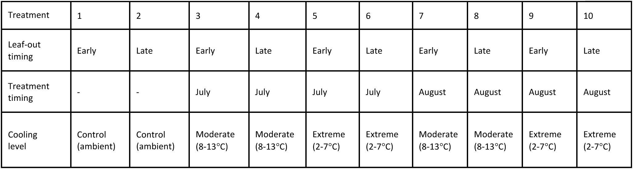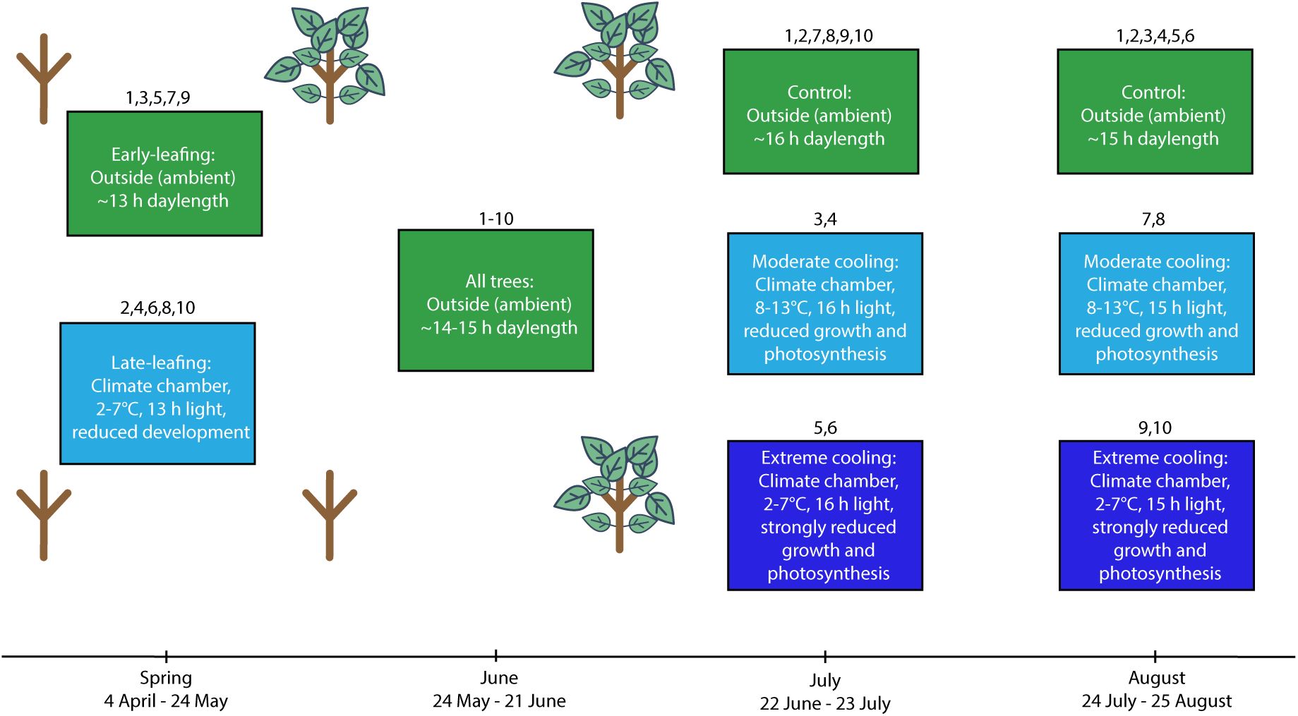 To test the antagonistic effects of early-season development and late-season air temperature on autumn phenology, we set up an experimental population (n = 267) of 40-60 cm tall European beech (