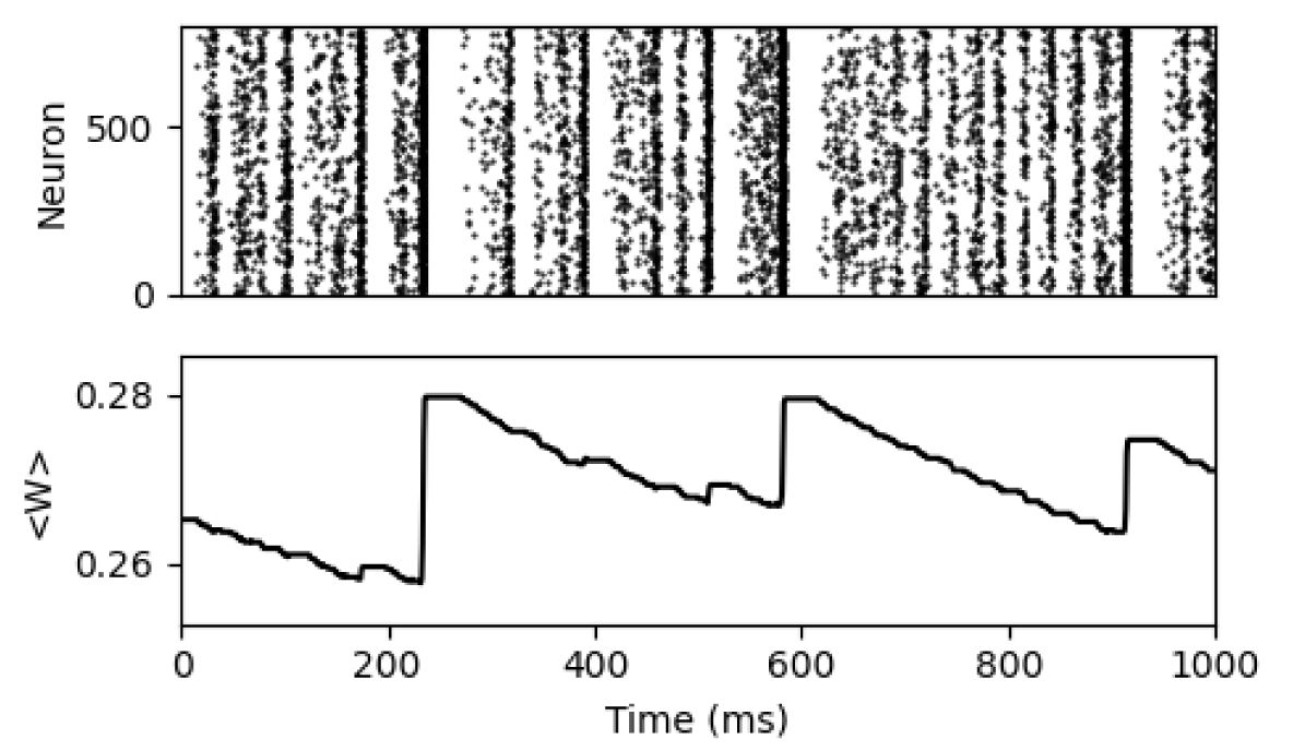 ], we showed that the model self-organizes to critical spontaneous dynamics and successfully recapitulates key experimental observations from in vivo visual cortex recordings [