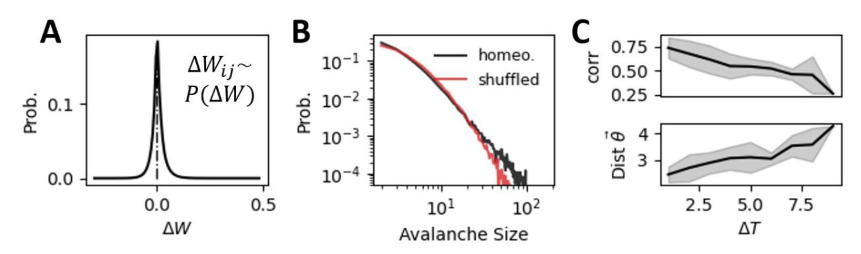 ], which regulates the network to achieve a stable state over time despite changes in external conditions or internal activity levels. Various computational models incorporating the homeostatic plasticity rule have successfully replicated SOC phenomena [