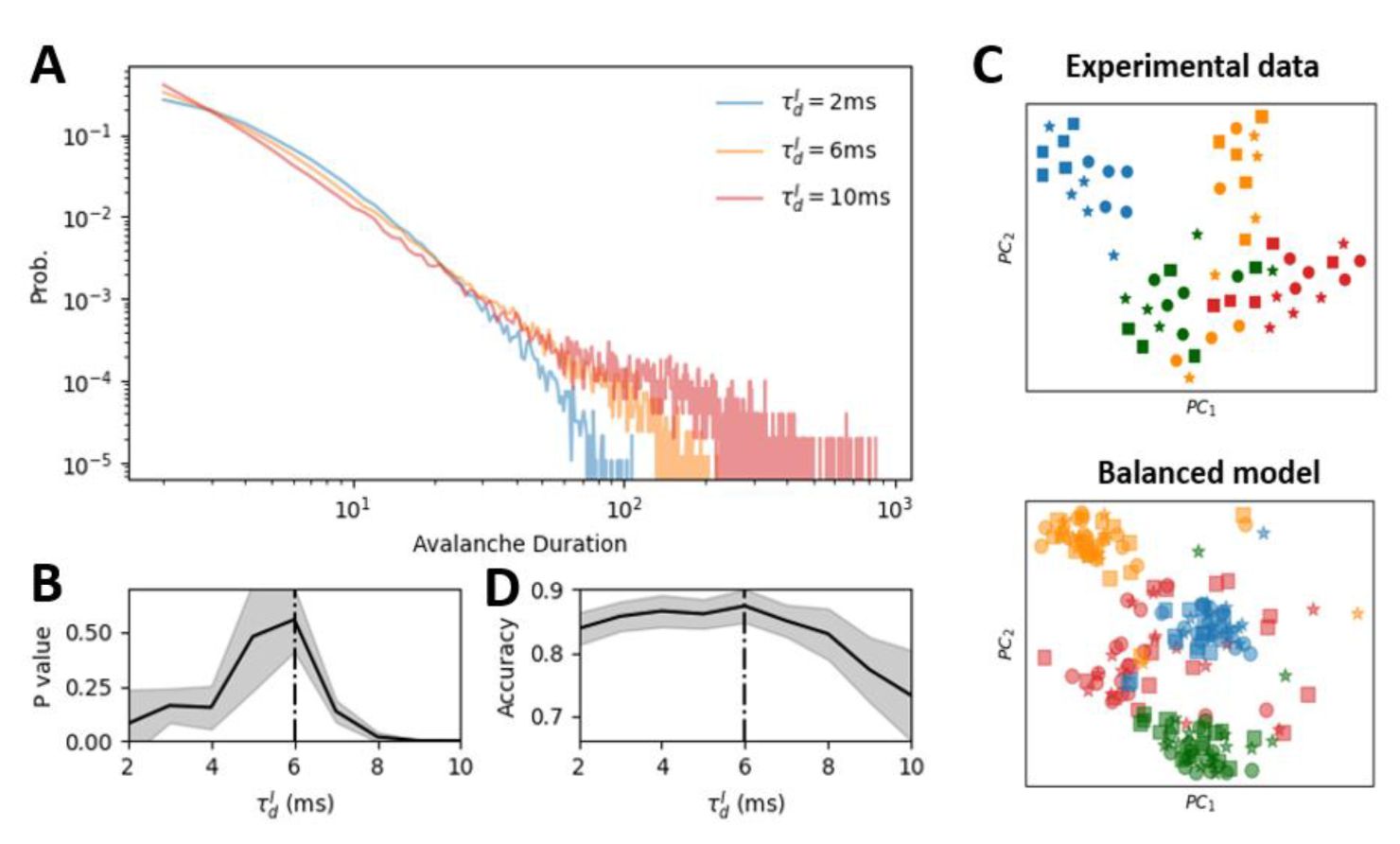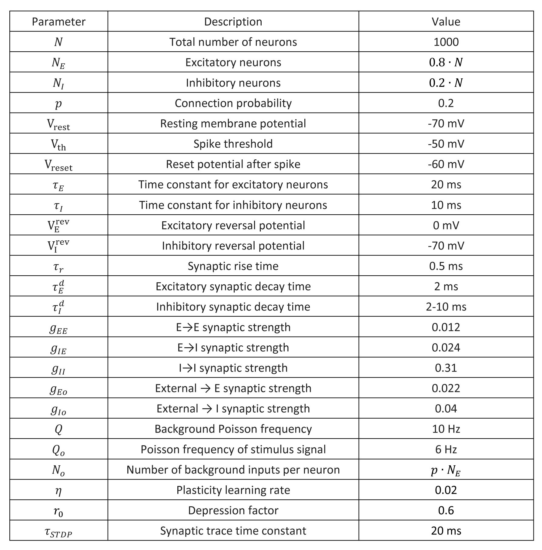 ] and we demonstrated that its spontaneous state exhibits near-critical features. Using an E-I network incorporating homeostatic plasticity specifically at inhibitory (to excitatory) connections [