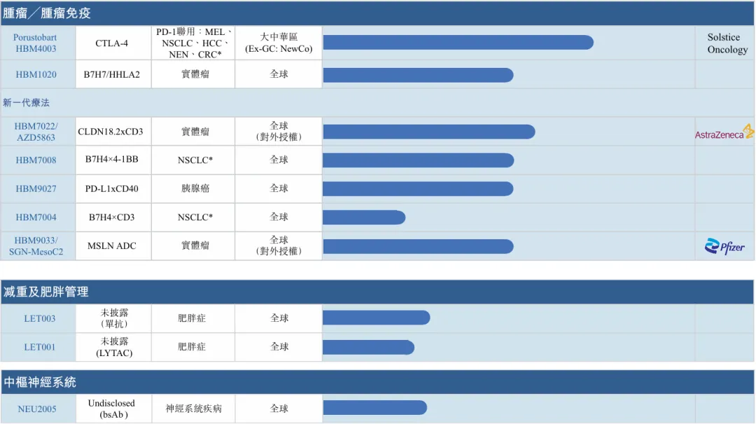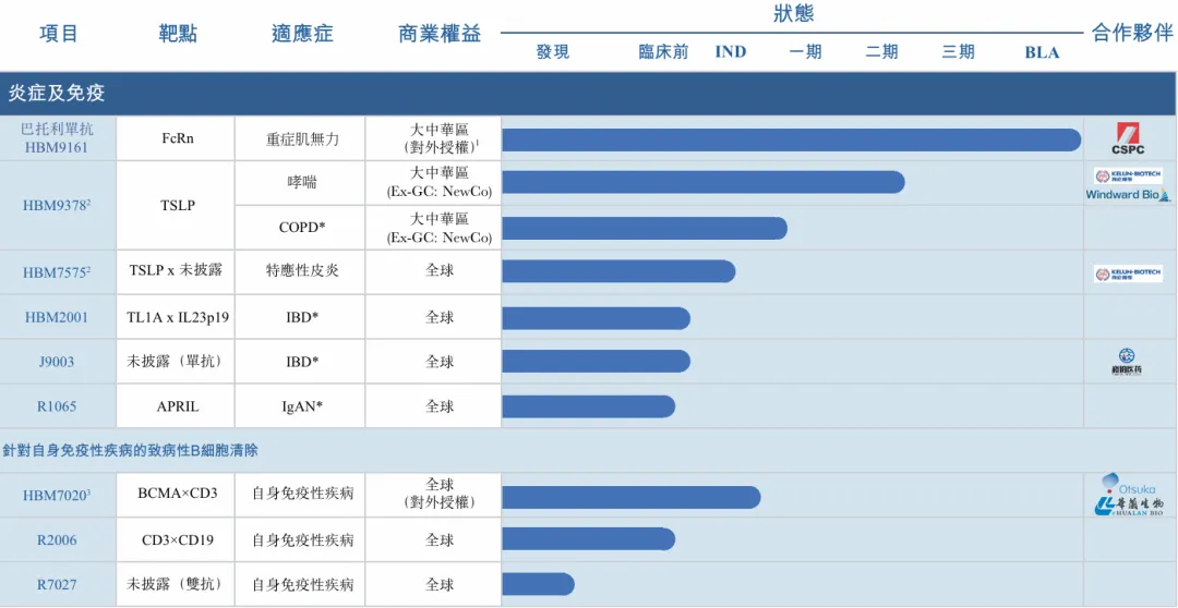 在研发管线方面,公司已建立起近20种专注于免疫性疾病、肿瘤及其他领域的候选药物组合。除了处于临床中后期的巴托利单抗、HBM9378和HBM4003外,公司还在持续推进新一代创新管线的开发。