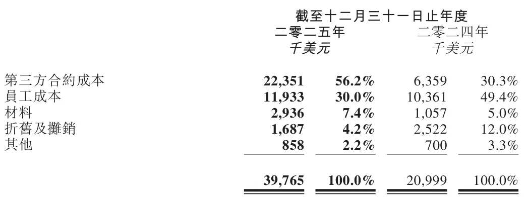 盈利能力的大幅提升,反映了公司收入结构的优化和成本控制的有效性。在收入快速增长的同时,销售成本为873万美元,占收入比例仅为5.5%,显示出高毛利业务模式的竞争优势。研发成本从2024年的2100万美元增至3977万美元,增幅89.5%,主要用于推进临床管线和扩展早期研发活动。行政开支从1317万美元增至2432万美元,主要源于员工成本和专业服务费用的增加。