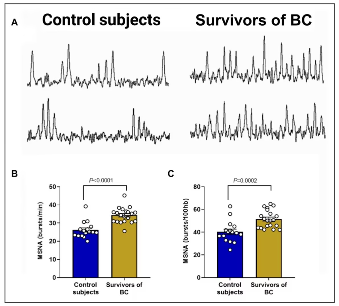 这项研究首次系统揭示,接受过多柔比星和曲妥珠单抗化疗的长期乳腺癌幸存者,即使在治愈近十年后,仍存在交感神经过度激活、血管内皮