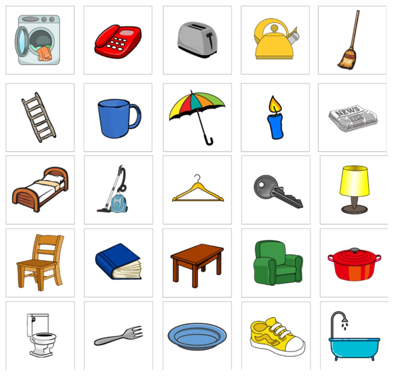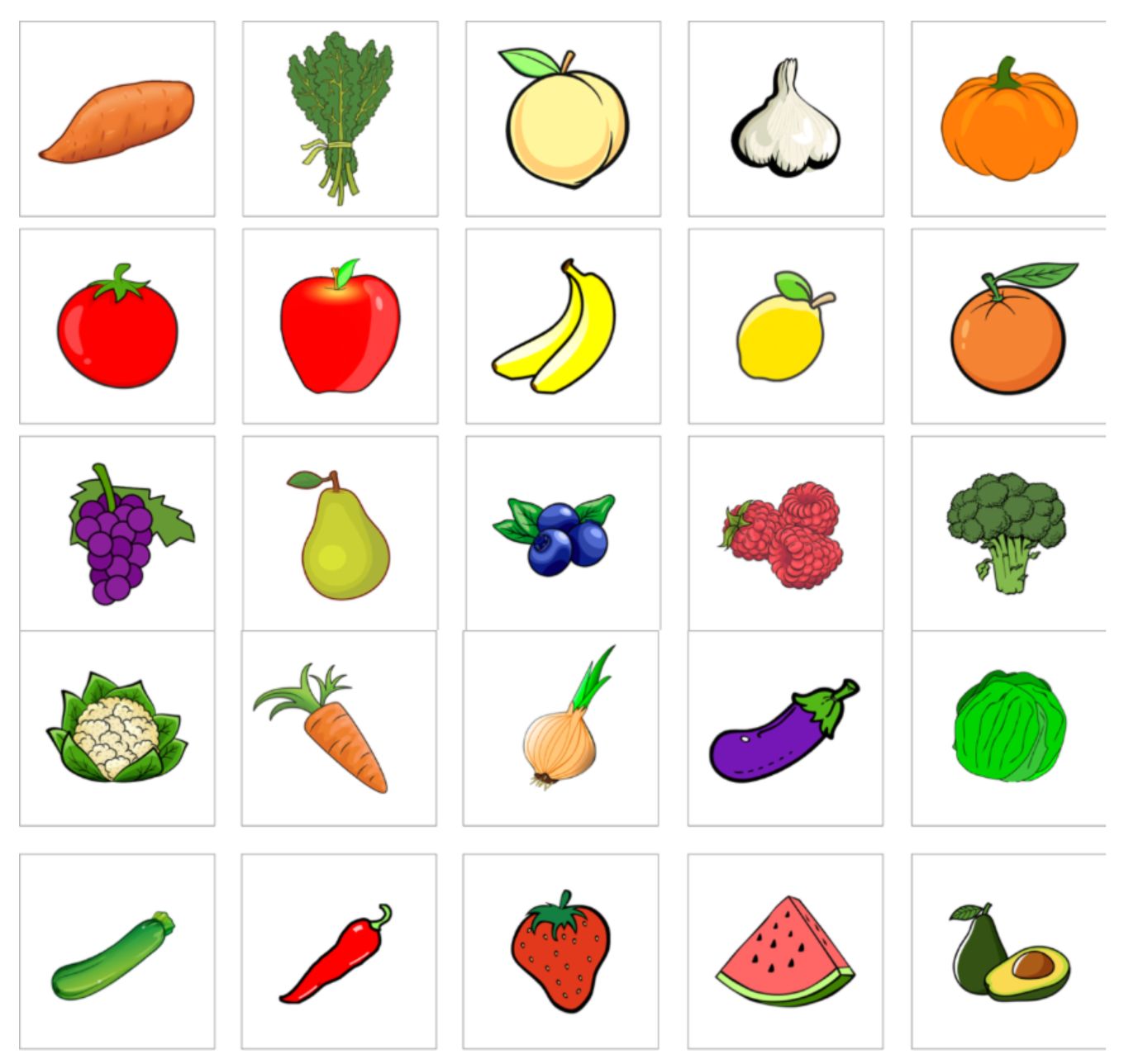 Our experiments used maps in the form of quadrilateral lattices arranged into either a grid (5×5) or a torus (4×4; manipulated between-subjects), in which each state corresponded to a unique image of either a household item (map 1) or a fruit / vegetable (map 2), assigned randomly between participants (
