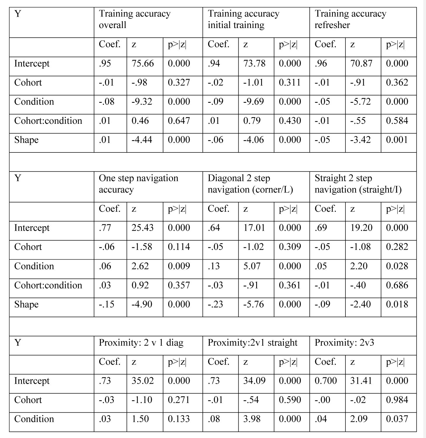 ) as predictors in linear mixed effects models. For a table of all model results, as well as all results split up by map shape and group, please see