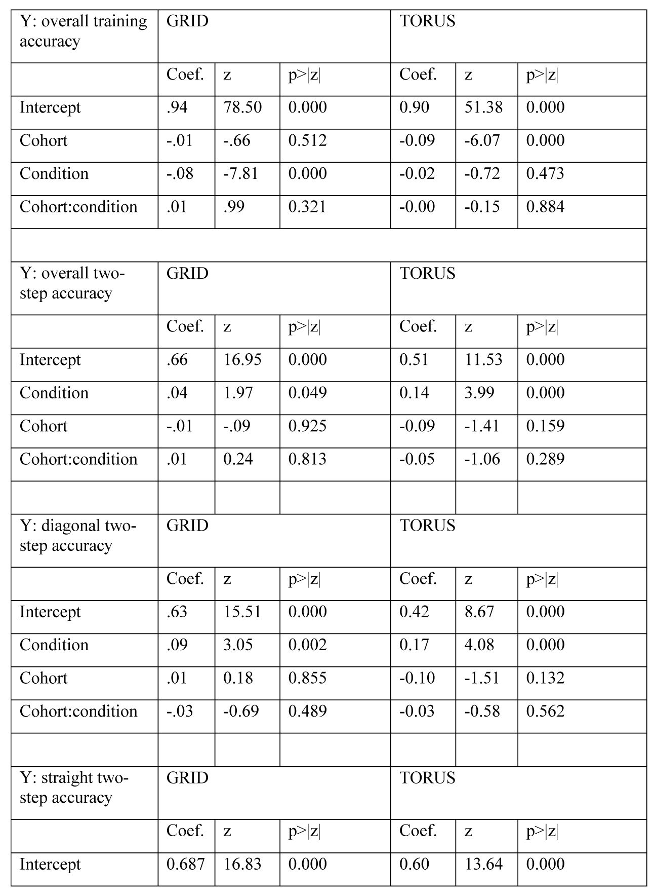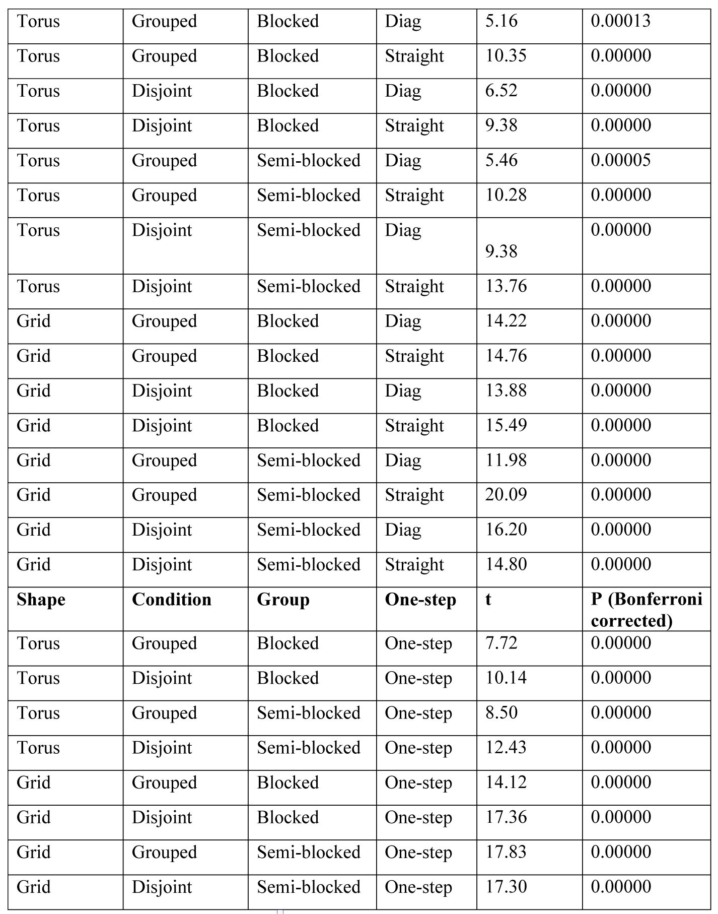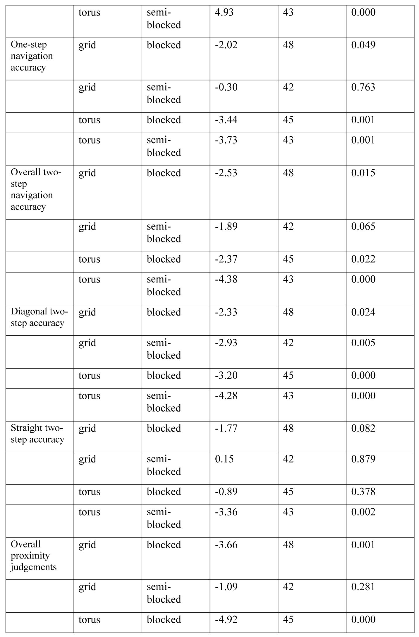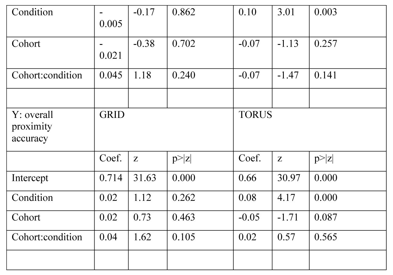 We model data from all four studies in a single statistical model, entering map shape (grid vs torus; between subjects,