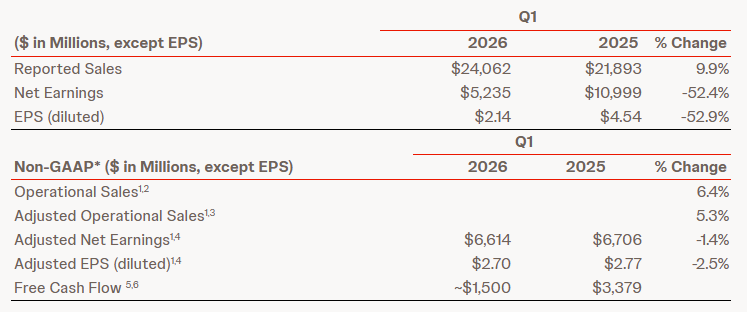 基于第一季度的强劲表现,强生上调2026年全年业绩预期,预计全年报告销售额中值将达到1008亿美元,同比增长约7.0%。