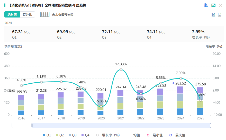 双苓止泻颗粒是太极集团独家品种双苓止泻口服液改剂型改良研发而成,属于中药改良型新药。该药品拟定功能主治为清热化湿、健脾止泻,适用于湿热内蕴、脾虚失健引发的小儿腹泻,症状表现为水样或蛋花样粪便,可伴有发热、腹痛、口渴、尿少、舌红等情况;轮状病毒性肠炎出现上述证候者也可使用。摩熵医药数据显示,2025年中成药 - 消化系统与代谢药物在全终端医院的销售额超270亿元。此次双苓止泻颗粒推进临床试验,有望助力太极集团在这一潜力市场开拓新的增长点。
