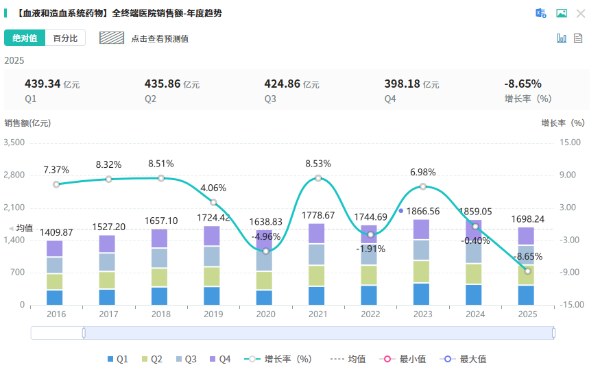 FKC289注射液在2026年1月13日首次申请临床,4月10日首次获批临床。该药是一款基于BCMA与CD19的双靶点CAR-T细胞治疗产品,旨在进一步提升CAR-T疗法在复杂血液系统疾病及相关适应症中的治疗效果,摩熵医药数据显示,血液和造血系统药物在2025年全终端医院市场的销售额超1600亿元。