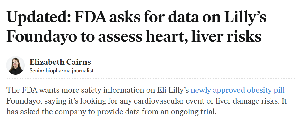 1.https://endpoints.news/fda-asks-for-more-data-on-lillys-foundayo-to-assess-heart-liver-risks/