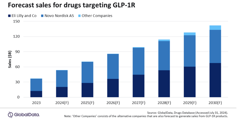诺和诺德与礼来的竞争是全产品线、全适应症的对抗。两家公司的管线竞争呈现清晰的对称性:在注射剂领域,司美格鲁肽对阵替尔泊肽;在口服剂领域,口服司美格鲁肽对阵奥氟格列隆。诺和诺德的核心武器库包括:司美格鲁肽(Semaglutide)、CagriSema(下一代复方制剂)、Amycretin(口服GLP-1/胰淀素受体共激动剂)。礼来的核心武器库则包括:替尔泊肽(Tirzepatide)、瑞他鲁肽(Retatrutide,GIP/GLP-1/胰高血糖素三重受体激动剂)、奥氟格列隆(Orforglipron)。这场对决覆盖了当下与未来,决定了谁将主导下一个十年的市场格局。礼来的瑞他鲁肽在中期临床试验中显示出比替尔泊肽更强劲的减重潜力,被誉为“潜在的游戏规则改变者”。诺和诺德的CagriSema结合司美格鲁肽与长效胰淀素类似物Cagrilintide,在临床试验中显示出超越单药的减重效果,被视为应对礼来竞争的重要储备。图2 Eli Lilly, Novo Nordisk to maintain ‘two horse race’ in GLP-1 weight loss market(https://www.helitra.com/eli-lilly-novo-nordisk-to-maintain-two-horse-race-in-glp-1-weight-loss-market-3/)06中国市场的关键战场,本土企业的机遇与挑战
