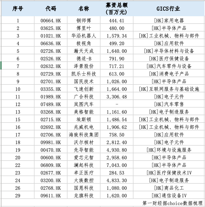 第一财经据choice数据统计,以上市日期计算,一季度共有29家企业成功赴港上市,其中以CIGS行业划分,在半导体产品、半导体材料与设备、电子元件、电子制造服务等高新技术领域的企业共有24家,募资总额达到436.37亿元。其中,国产GPU龙头壁仞科技与天数智芯相继上市,填补了港股在GPU领域的空白。