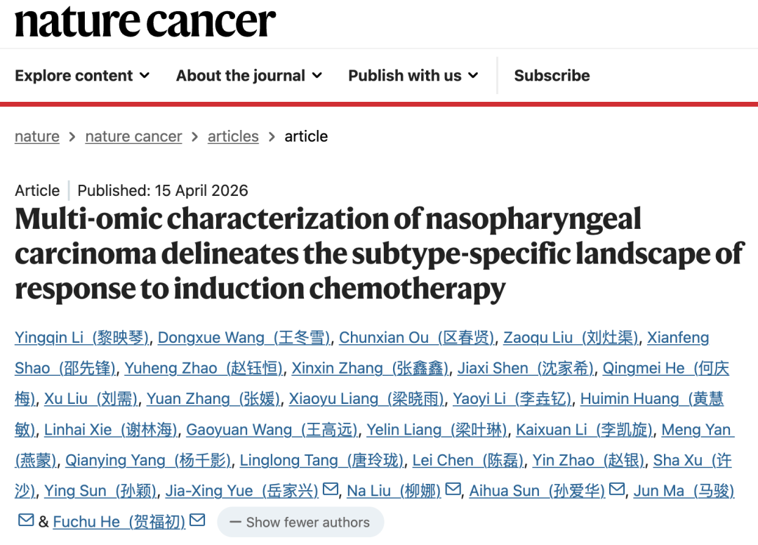 贺福初院士、马骏院士合作Nature Cancer:利用多组学构建鼻咽癌全新分型体系,为个体化精准治疗奠定基础