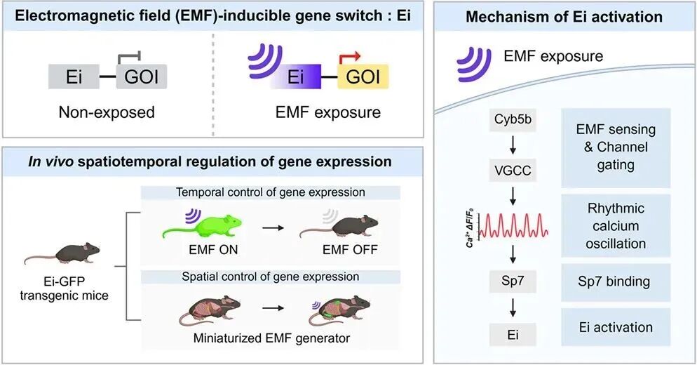 电磁场诱导基因开关(Ei)用于精准的时空基因表达控制;