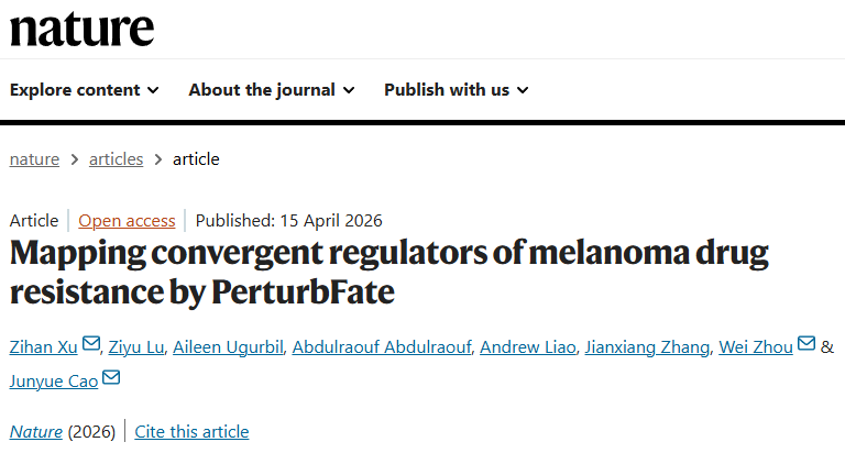Nature | 洛克菲勒大学曹俊越/周伟/许子涵团队开发创新平台绘制黑色素瘤耐药图谱,揭示驱动耐药的共同调控程序与核心转录因子