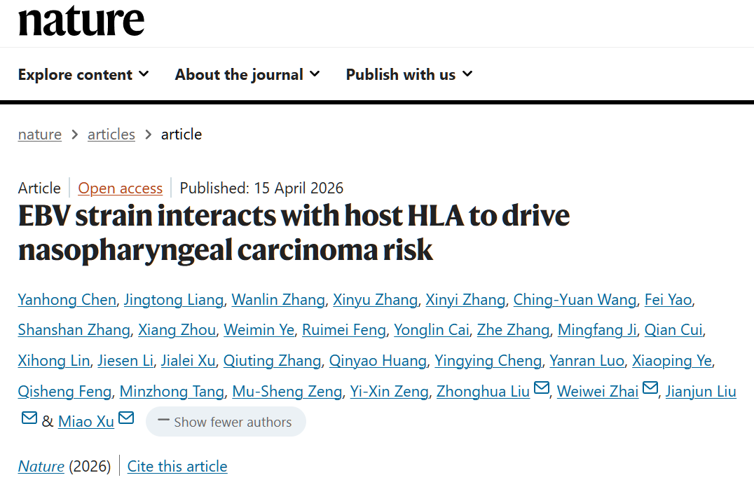 [1]Chen, Y., Liang, J., Zhang, W. et al. EBV strain interacts with host HLA to drive nasopharyngeal carcinoma risk. Nature (2026).