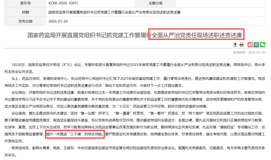 短短两天之后,16日,国家药监局换上新的党组书记。这个时间线,比任何官方表态都更能说明问题。药监系统的反腐和整顿,才刚刚进入深水区,终身倒查成为各个监管口子的常态,或许很难因为“年龄到点”就自然收场(尽管有利益相关方对外传递是因为“年龄到点”原因)。