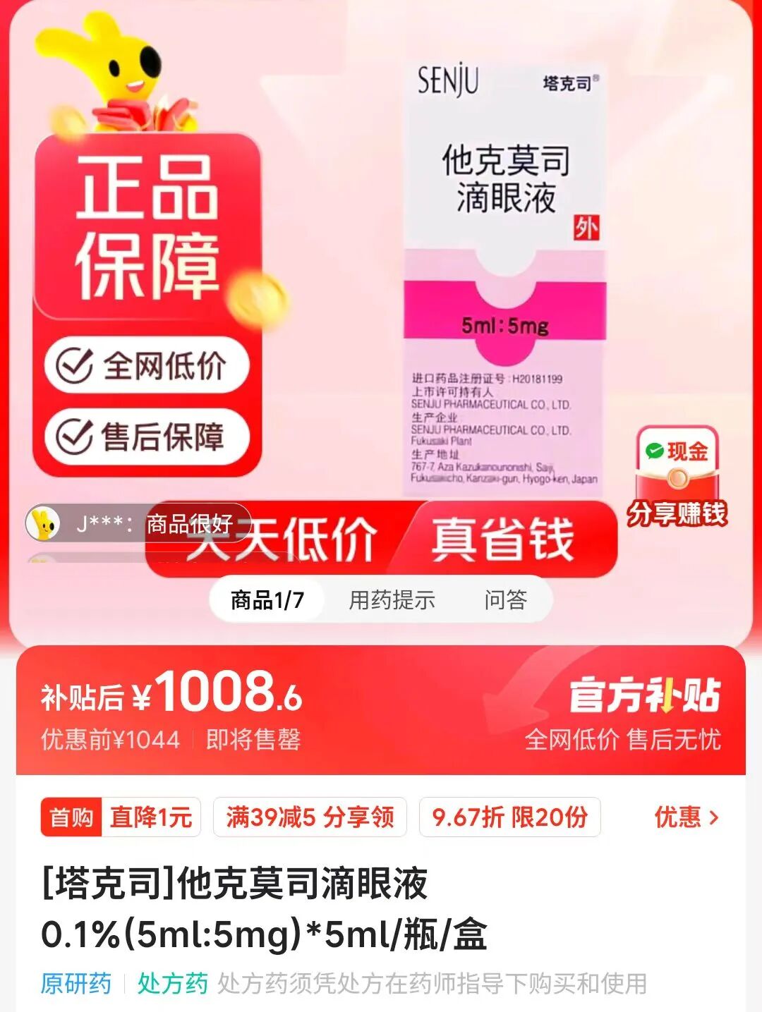 近日,原研药他克莫司滴眼液价格被爆炒的消息引发市场关注。当前,在一些电商平台上,这款药的售价从一盒700多元涨到接近千元,也有超过千元。