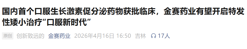国内首个!金赛药业口服生长激素获批临床