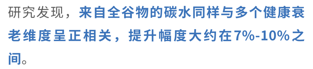 研究发现,当总碳水化合物摄入量占总能量的50%-55%时,人群健康衰老的可能性最高。真正决定差距的,不只是「吃了多少」,更是「吃了什么」。每增加10%能量的高质量碳水化合物(比如全谷物、水果、蔬菜和豆类),健康衰老的可能性就会上升31%;相反,如果增加的是精制碳水化合物,那么健康衰老的可能性反而会下降13%。