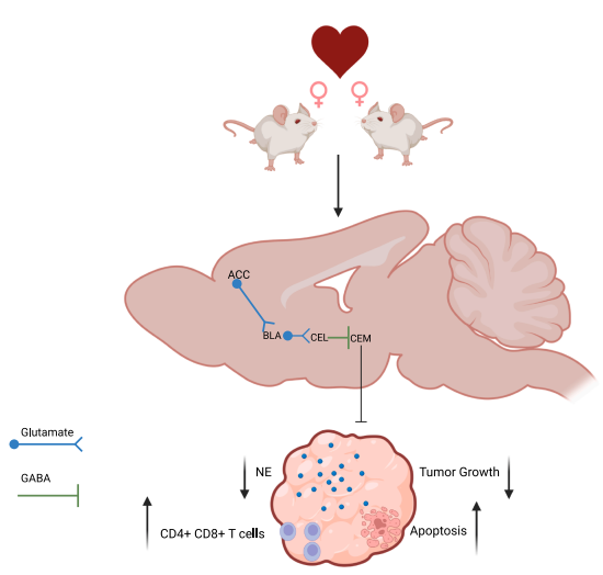 图:社交互动激活皮质杏仁核回路以抑制乳腺肿瘤生长