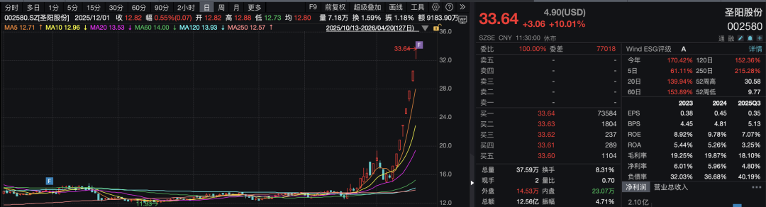 近期液冷市场受到关注,今日盘中华升股份、康盛股份、圣阳股份、英维克、广安爱众、飞龙股份、佳力图等多家公司触及涨停板。具体来看,华升股份收获3天3板,5日涨幅达29.81%,圣阳股份8天8板,5日涨幅已达61.11%。