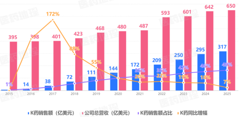 要理解默沙东今天的“犹豫”,必须先看清K药当年是怎么赢的。2025年,K药全球销售额突破300亿美元,占整个公司营收的半壁江山。