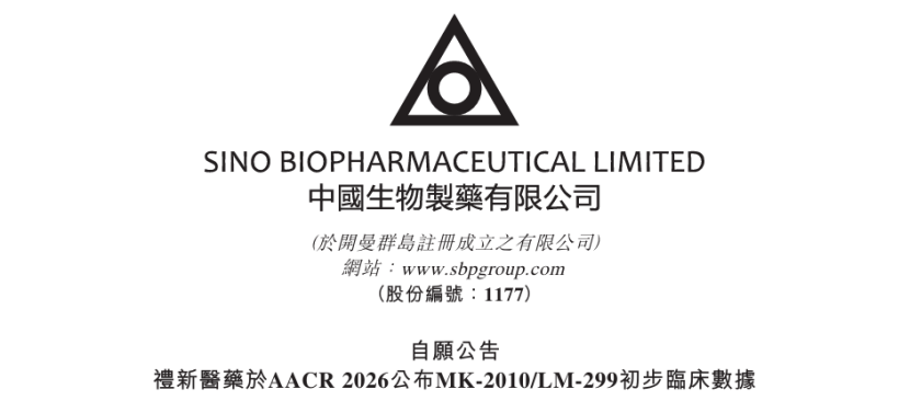 近日,中国生物制药全资附属公司礼新医药于2026年美国癌症研究协会(AACR)年会上,公布了其自主研发的PD-1/VEGF四价双特异性抗体MK-2010(又称LM-299)的首次人体研究初步数据。2024年11月,礼新医药已与默沙东达成全球独家授权协议,授予默沙东在全球范围内开发、生产和商业化LM-299的独家许可。本次公布的积极早期数据支持该药物作为单药或联合治疗方案的进一步开发。