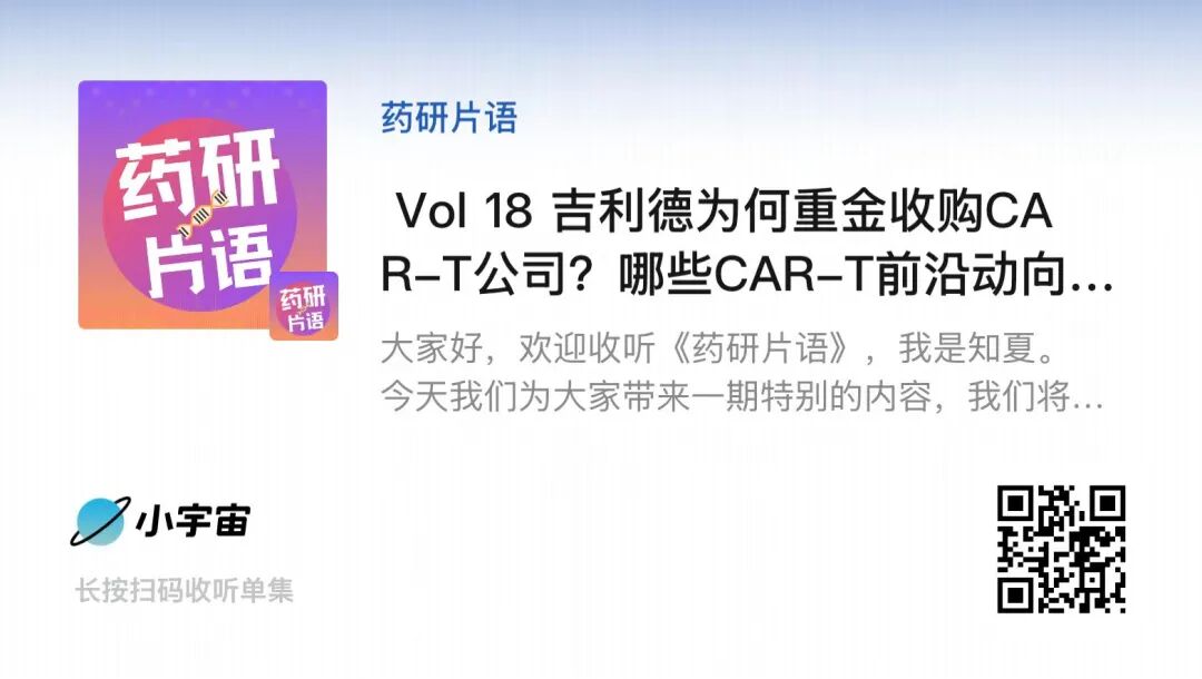 最后,欢迎大家关注我们在小宇宙上的播客栏目——药研片语,和我们一起关注CAR-T细胞疗法研发的趋势~