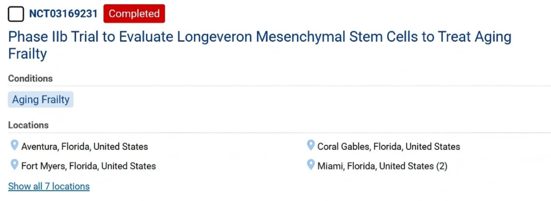 本次公布数据的临床试验,是一项已完成的IIb期临床试验,旨在探索异基因间充质干细胞对老年衰弱症患者的潜在影响,为后续研究提供数据支撑。
