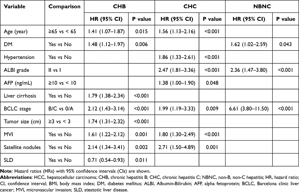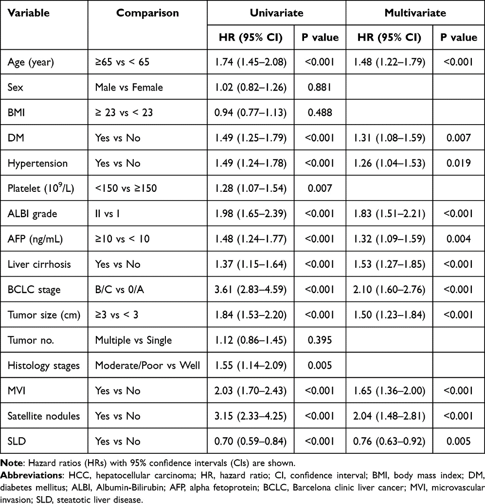 表2 肝癌术后全因死亡率相关因素的单因素和多因素分析