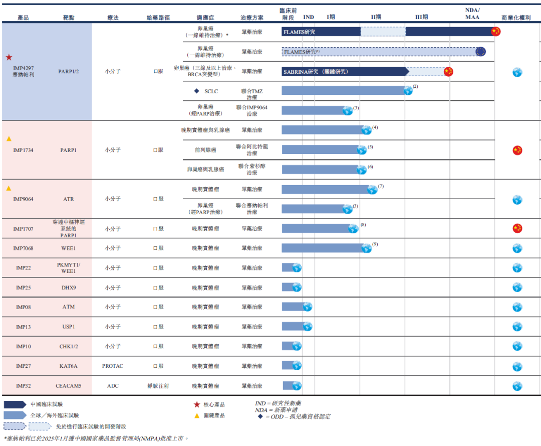 BD合作方面,英派药业将PARP1抑制剂IMP1734和IMP1707的海外权益授权给Eikon,后者支付3150万美元预付款,9.56亿美元里程碑金额,以及高个位数至低双位数百分比的销售分成。英派药业塞纳帕利的中国商业化权益授权给中美华东,后者支付1亿元预付款,1.9亿元里程碑,英派药业则向对方支付一定百分比的销售服务费。